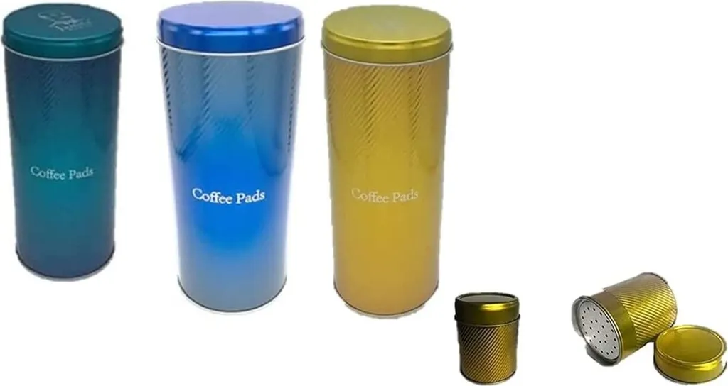 4-teiliges Set aus 3X Kaffeepaddose und 1x Schokostreuer gold – Kaffeedose für Kaffeepads – Aufbewahrungsbehälter mit Schokostreuer – Dekodose