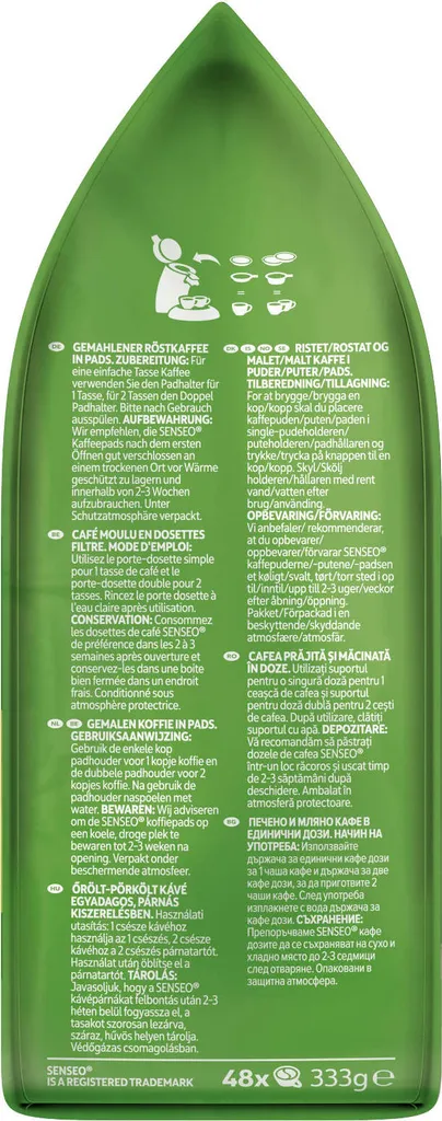 - Das t umfasst 10 x SENSEO Mild Kaffee Pads à 48 Getränkepads